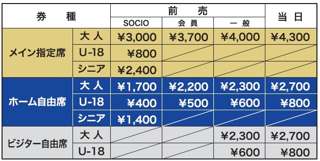 ※Os sócios SOCIO podem adquirir ingressos pelo preço SOCIO, e os membros do Clube de Apoio podem adquirir ingressos pelo preço de associado.