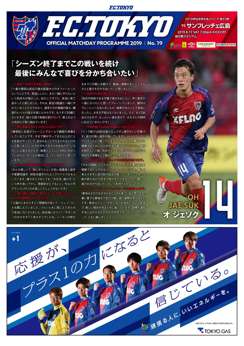 17/8 (Sáb) 2019 Meiji Yasuda Life Insurance Company J1 League Rodada 23 vs Sanfrecce Hiroshima (19:00 Início / Ajinomoto Stadium) sobre o programa oficial do dia da partida, informamos conforme abaixo.