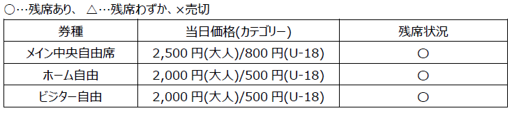 Venda de ingressos no dia e áreas de uso para o jogo contra Kitakyushu em 7/9 (Sáb)