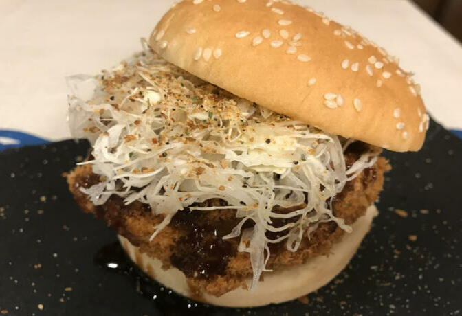 ・Hambúrguer de Menchi Katsu de Miyakonojo 600 ienes