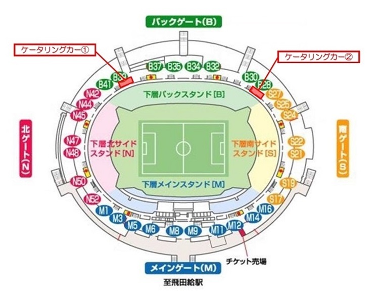 ・A "Área de Alimentação" está localizada fora do estádio. Após a entrada, por favor, utilize o "Portão Norte 1".