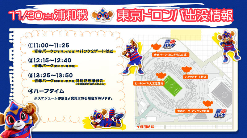 • 30/11(Sáb) Informações sobre a aparição do TOKYO DOROMPA na partida contra Urawa!