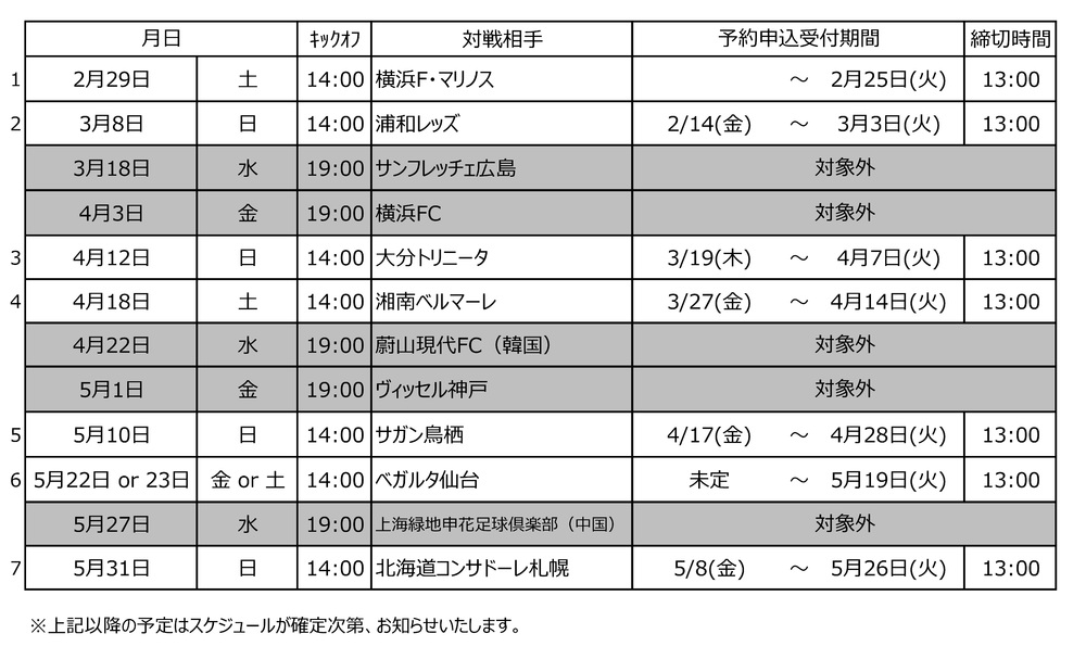 【Data de realização】Dias de jogos em casa do FC Tokyo (exceto jogos em dias de semana)