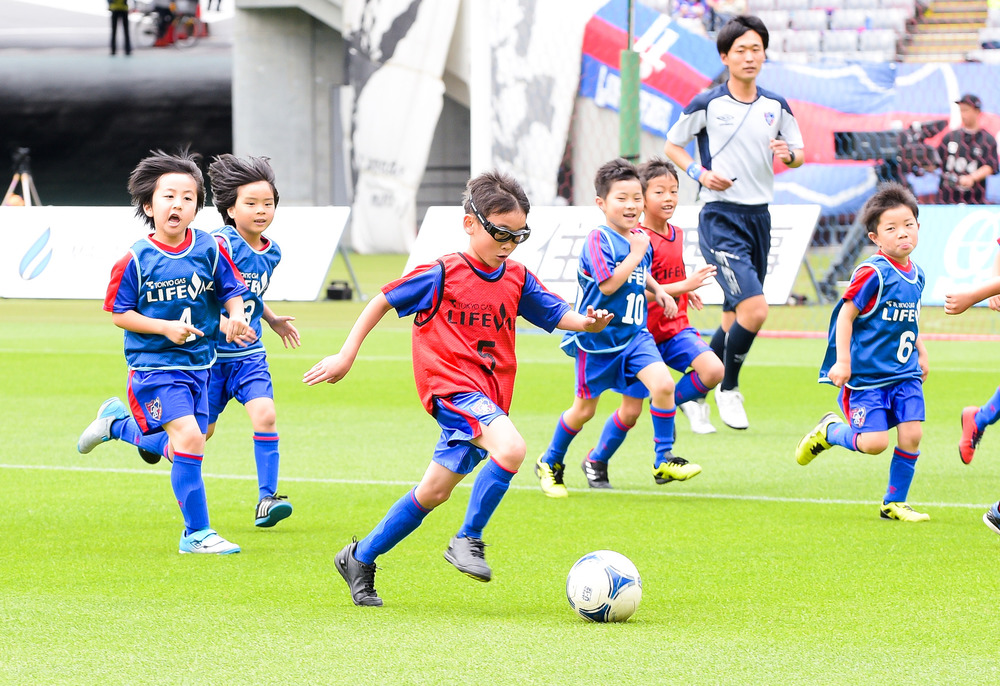 No FC Tokyo, também realizaremos o "Kids Match" nos jogos em casa da J1 League em abril, onde as crianças poderão experimentar jogar no mesmo campo que os jogadores profissionais.