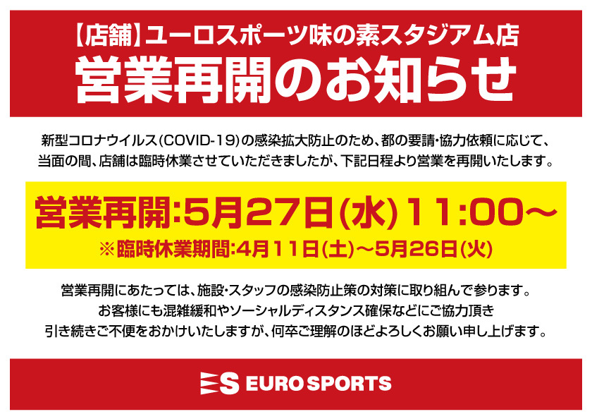 Aviso de 'Reabertura' da loja Euro Sports Ajinomoto Stadium