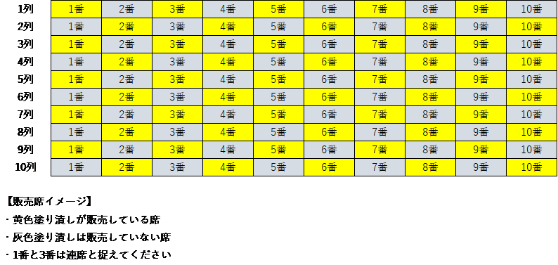 ※Se você comprar assentos por seleção automática, mesmo que sejam assentos consecutivos de acordo com as regras acima, a mensagem de aviso "Não foi possível disponibilizar assentos consecutivos. Assentos separados serão fornecidos. Se não houver problema, por favor, marque a aprovação e prossiga com o procedimento." será exibida no sistema, mas por favor, continue normalmente.