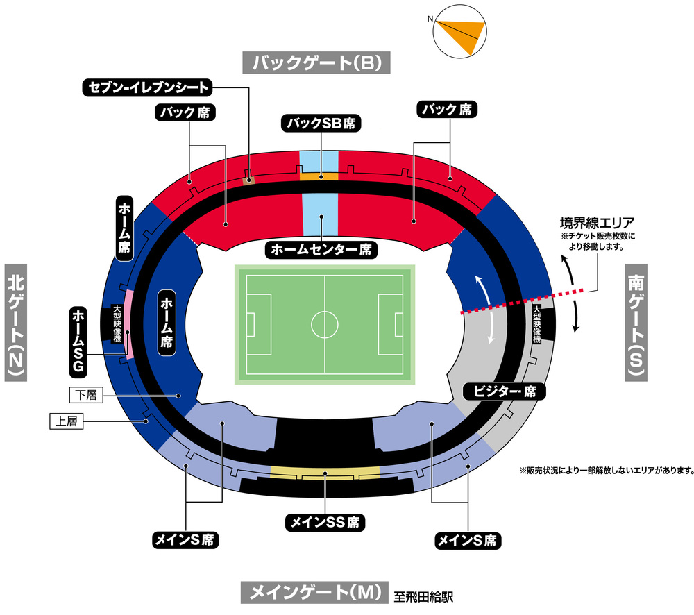 Na área de apoio do FC Tokyo (assentos da casa, assentos de trás, assentos centrais da casa, lado norte do Main SS, lado norte do Main S reservado, Home SG, Back SB), não é permitido apoiar a equipe visitante.