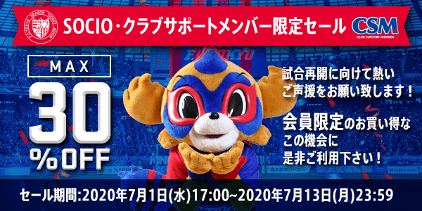 Desta vez, o FC Tokyo, visando a retomada da Liga Meiji Yasuda Life Insurance Company J1 em 2020, oferecerá aos membros SOCIO e membros de apoio do clube a oportunidade de se animarem ainda mais e lutarem com paixão junto ao clube. Para isso, alguns produtos oficiais do FC Tokyo, como camisetas dos jogadores e toalhas cachecol, estarão à venda por tempo limitado na loja oficial online do FC Tokyo com descontos especiais de 10 a 30%.