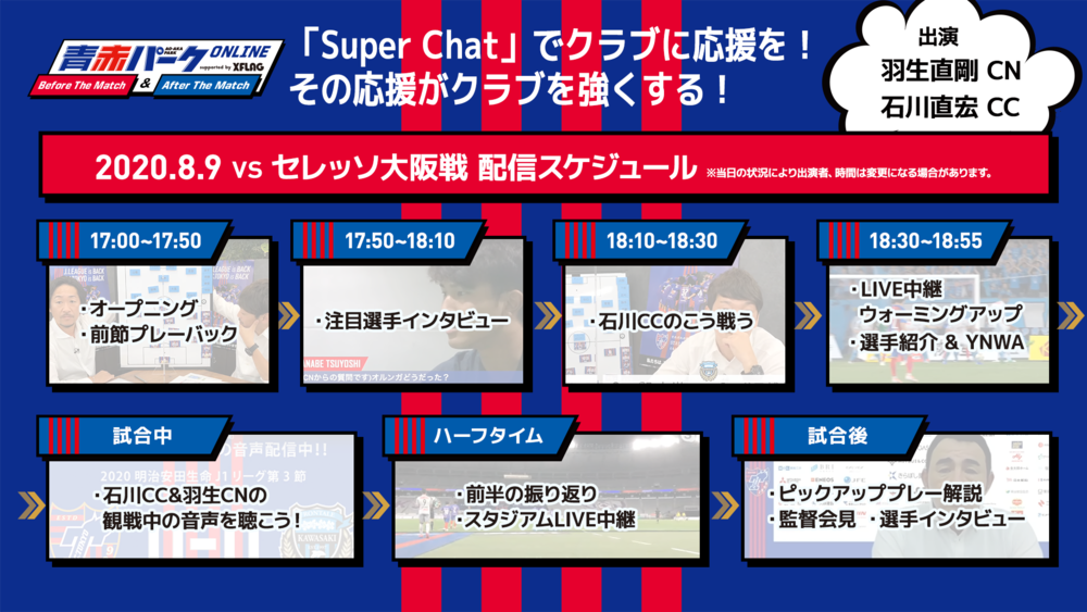 09/08 (Dom) Jogo contra C Osaka "AO-AKA PARK Online Before / After The Match supported by XFLAG" Aviso de realização