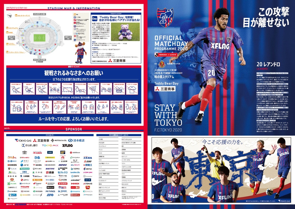 15/8 (Sáb) 2020 Meiji Yasuda Life Insurance Company J1 League Rodada 10 vs Nagoya Grampus (Início às 19:00 / Ajinomoto Stadium) sobre o programa oficial do dia da partida, informamos conforme abaixo.