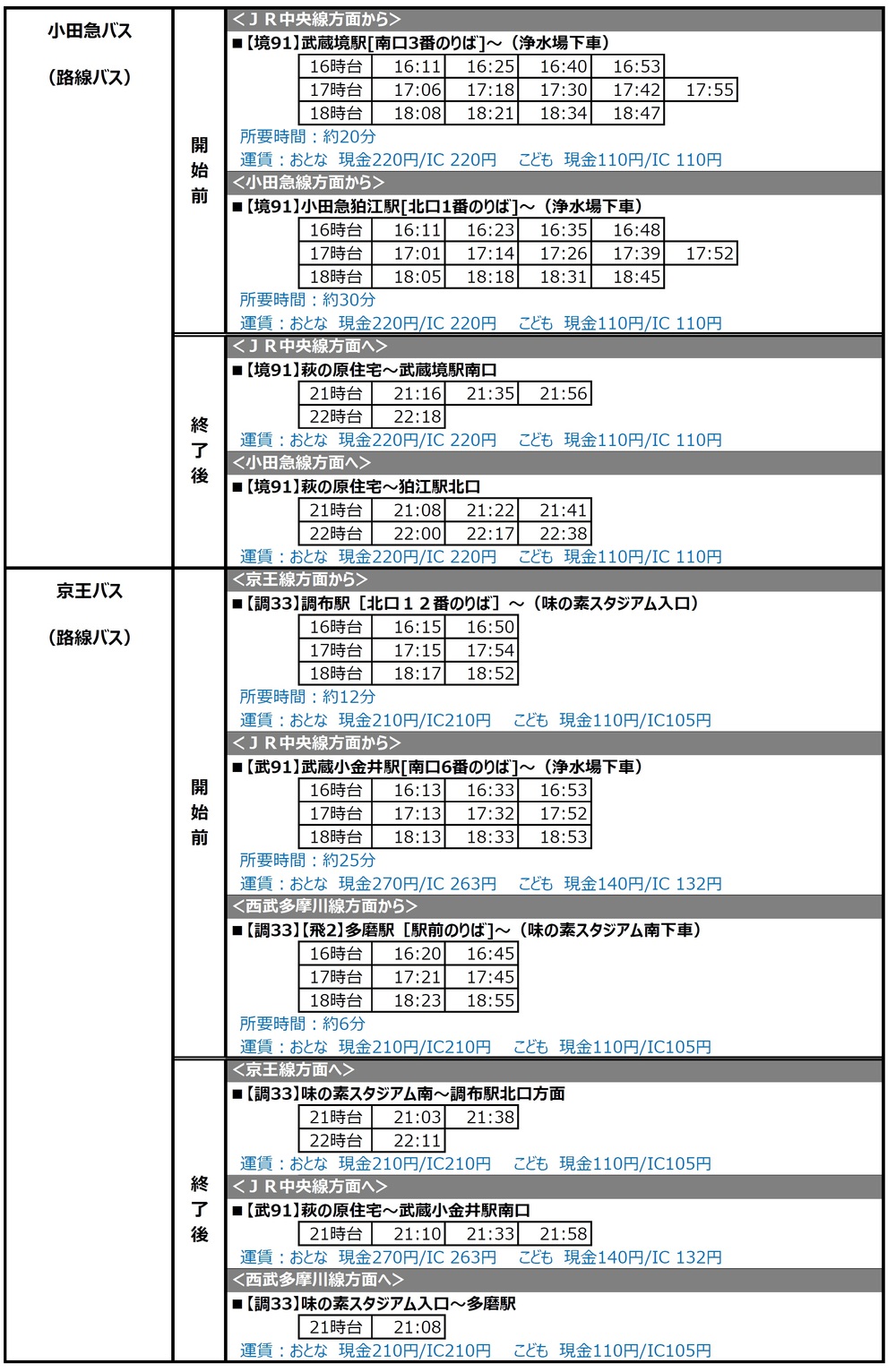 23/9 (Dom) 2020 Meiji Yasuda Life Insurance Company J1 League Rodada 18 vs Cerezo Osaka (Início às 19:00 / Ajinomoto Stadium) informações sobre o serviço de ônibus shuttle e ônibus de linha que serão operados.