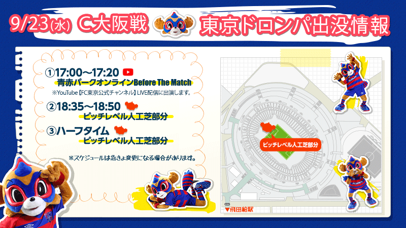 23/9 (Qua) Informações sobre a aparição do TOKYO DOROMPA na partida contra C Osaka!