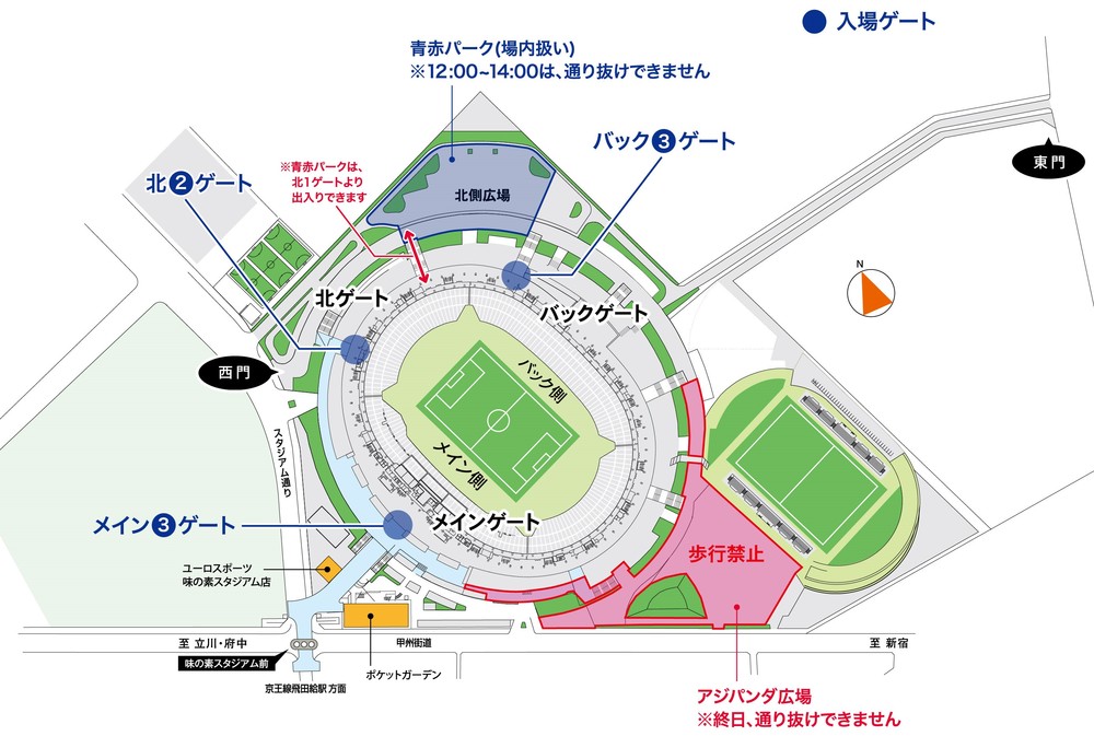・Para quem for preparar os banners (bandeiras, faixas) com antecedência, por favor, reúna-se 120 minutos antes da abertura dos portões na "Praça triangular ao lado da loja Euro Sports Ajinomoto Stadium" dentro do recinto do estádio.