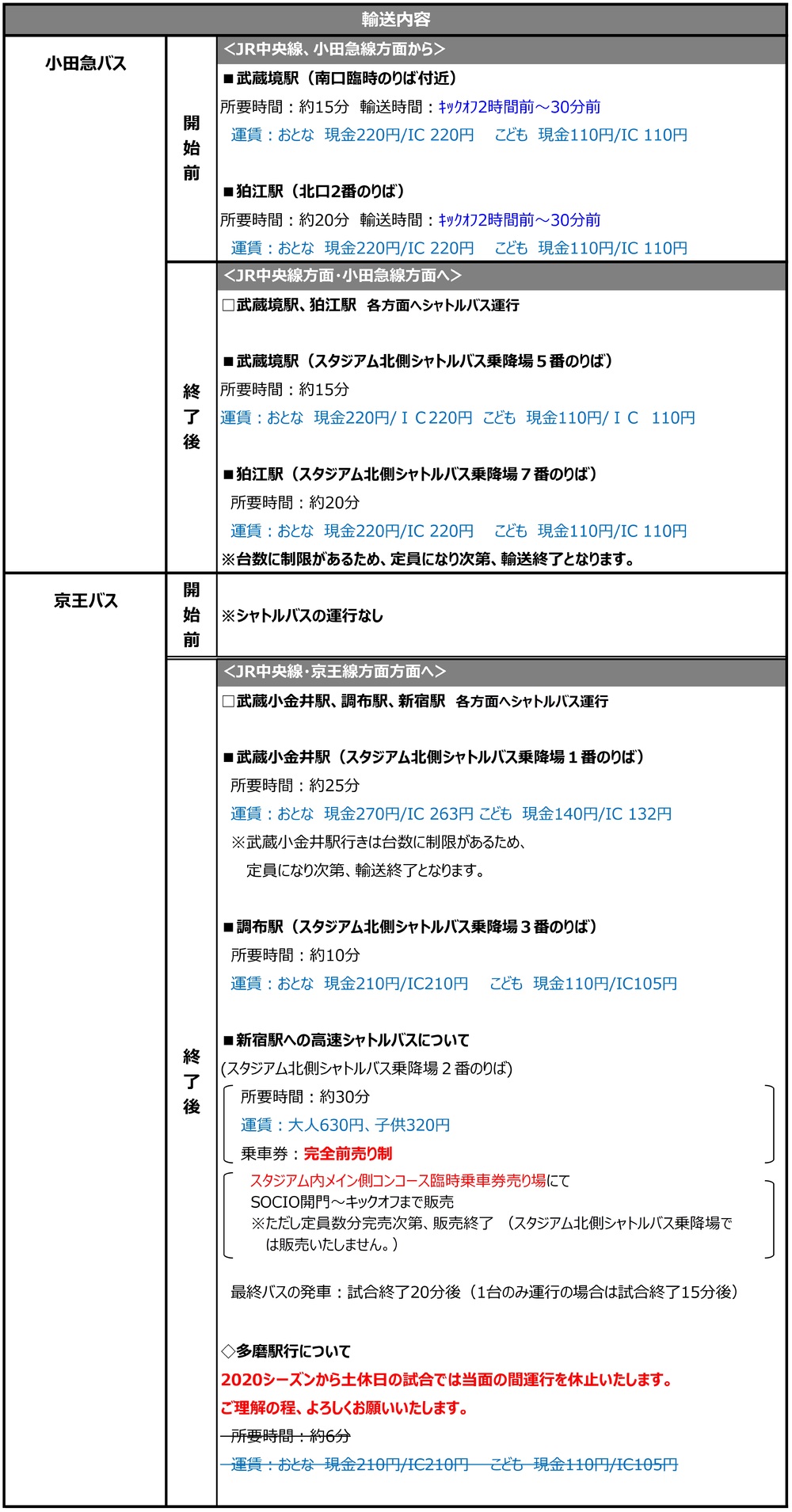 10/10(Sáb) 2020 Meiji Yasuda Life Insurance Company J1 League Rodada 21 vs G Osaka (Início às 14:00 / Ajinomoto Stadium) informações sobre o serviço de ônibus shuttle e ônibus de linha que serão operados.