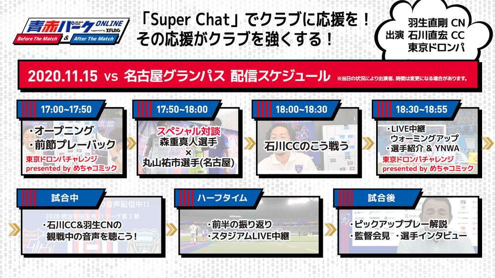 15/11 (Dom) Aviso de realização do jogo contra Nagoya 『AO-AKA PARK Online Before / After The Match supported by XFLAG』
