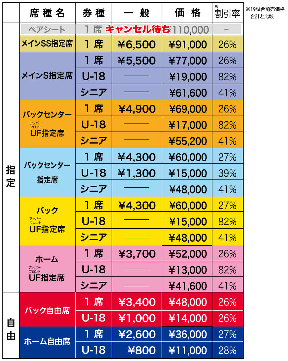 ※ Atualmente, aqueles que não se enquadram na idade alvo e no tipo de assento alvo acima para o "tipo de ingresso sênior" devem se inscrever pelo preço de "1 assento".