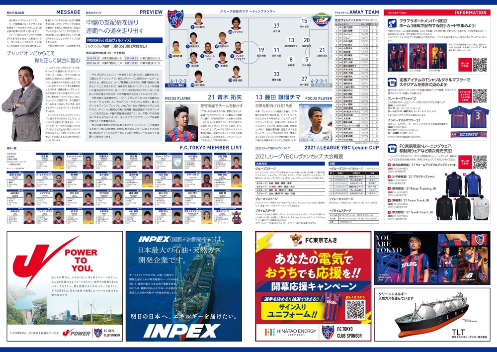 3/3 (Qua) Programa oficial do dia do jogo da 1ª rodada da fase de grupos da Copa YBC Levain da J-League 2021 vs Tokushima Vortis (início às 18:00 / Ajinomoto Stadium).