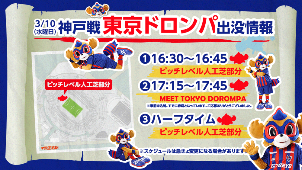 □17 de março (Qua) Também será realizado o 'MEET TOKYO DOROMPA' na partida contra Shonan!