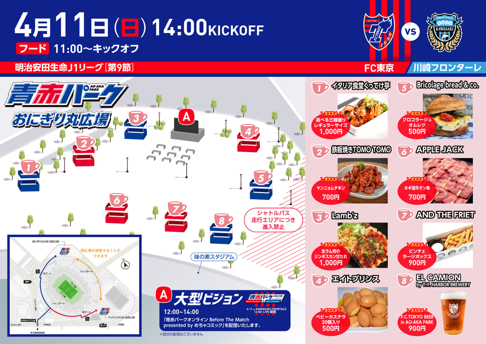 11 de abril (Dom) 2021 Meiji Yasuda Life Insurance Company J1 League Rodada 9 FC Tokyo vs Kawasaki Frontale (Início às 14:00 / Ajinomoto Stadium) realizará o 'AO-AKA PARK'!