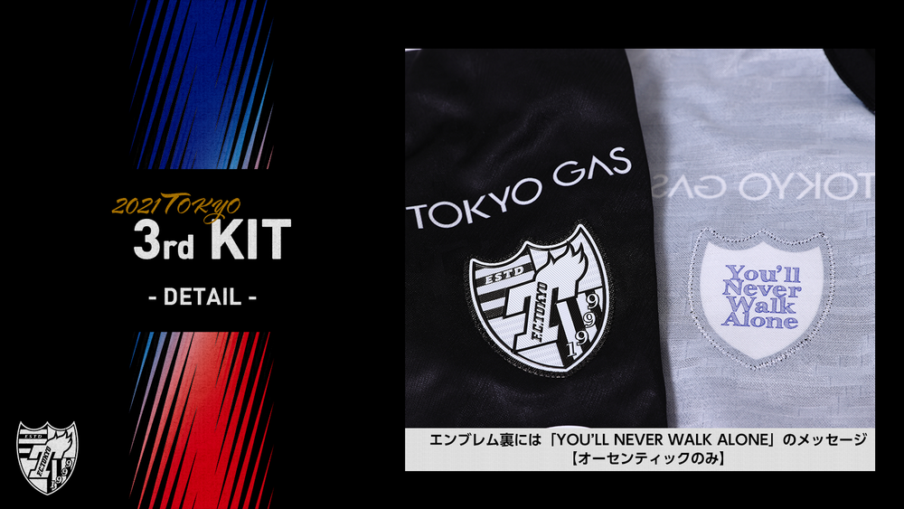 O terceiro uniforme tem um design inspirado na Tokyo Tower, que foi o edifício mais alto do Japão por mais de 50 anos, e na Tokyo Skytree, atualmente o edifício mais alto. Com uma coloração preta que evoca as noites de verão, apresenta um gráfico ousado no centro que lembra a iluminação da Tokyo Tower e da Tokyo Skytree, enquanto as cores do clube, azul e vermelho, adicionam um toque moderno ao design clássico.