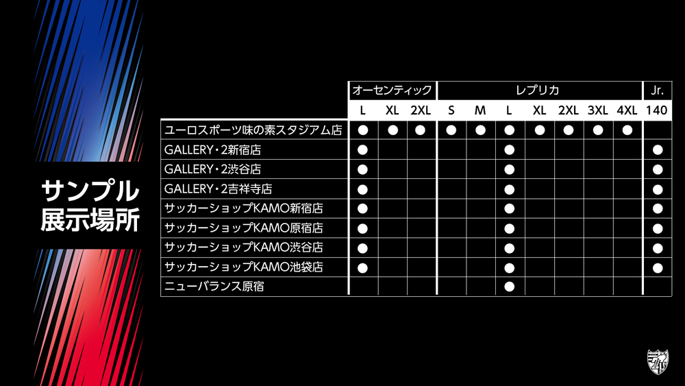 ※A loja Euro Sports Ajinomoto Stadium estará fechada temporariamente em 27/4 (Ter) para inventário, e não atenderá consultas por telefone, mas a exibição e o pedido do terceiro uniforme na loja serão realizados.