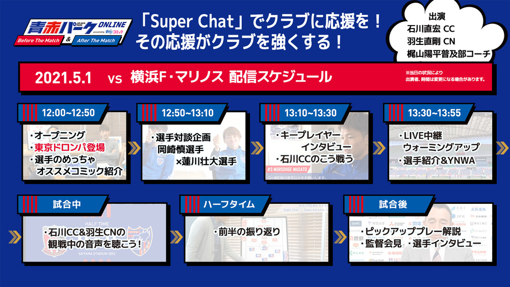 • 05/01 (Sáb) Aviso de realização do 'AO-AKA PARK online Before/After The Match presented by mechacomic' contra Yokohama F.Marinos