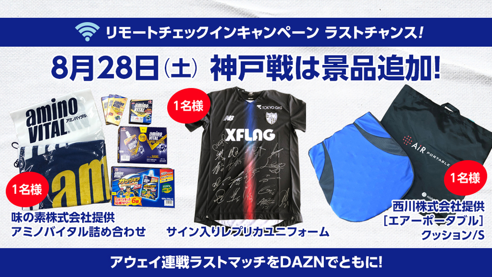 A campanha de check-in remoto para o jogo contra Kobe em 28 de agosto (Sáb) será realizada com prêmios aumentados como o último evento da sequência de jogos fora de casa!