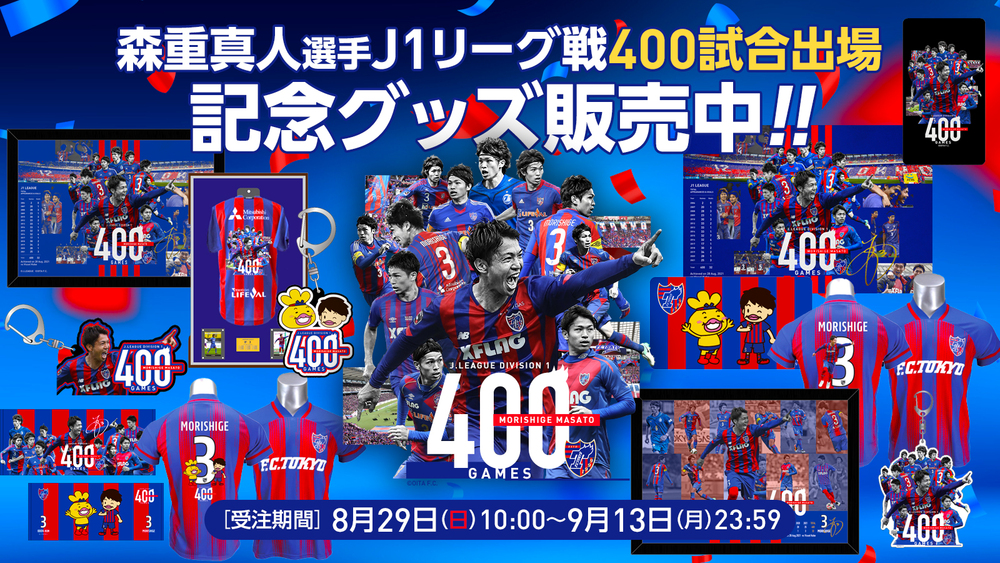 28 de agosto (Sáb) de 2021, na partida da Meiji Yasuda Life Insurance Company J1 League contra o Vissel Kobe, Masato MORISHIGE alcançou 400 jogos na J1 League. Para comemorar, selecionamos fotos de jogos passados de MORISHIGE e criamos produtos com o "Logo Comemorativo dos 400 Jogos", além de muitos produtos colaborativos do Oden-kun × Masato MORISHIGE!
