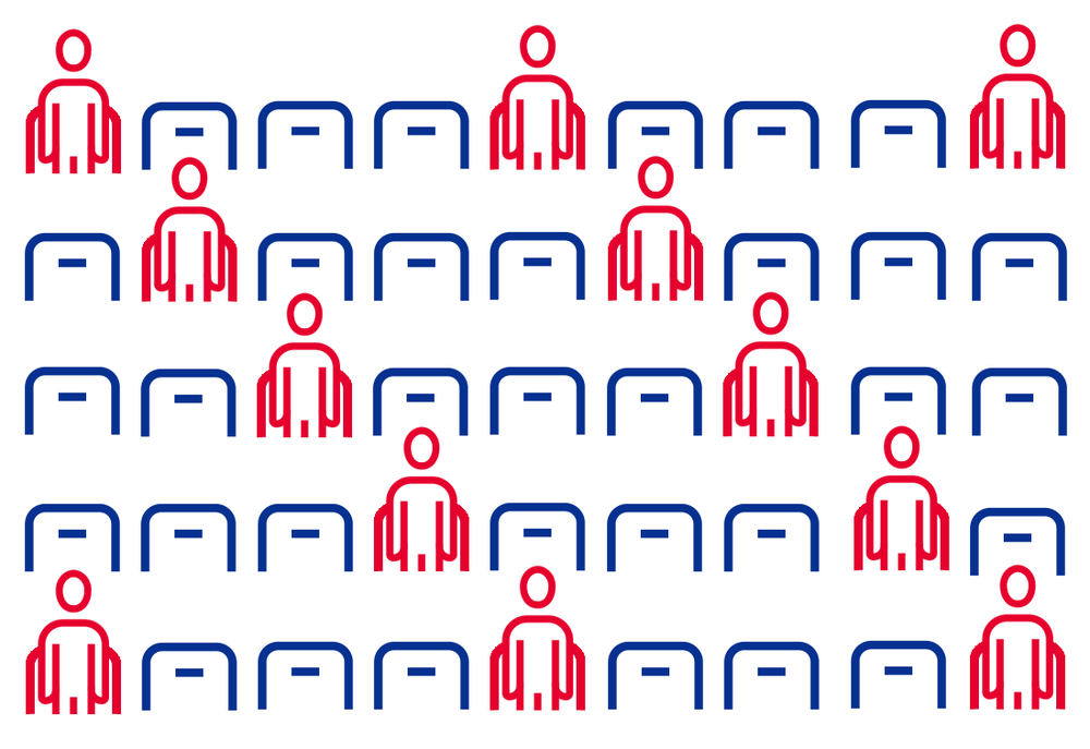 ・As pessoas acompanhantes, incluindo familiares que vieram juntos, também devem sentar-se com espaçamento entre si. (Crianças em idade pré-escolar podem sentar no colo)