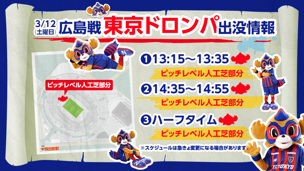 • 12/3 (Sáb) Informações sobre a aparição do 'TOKYO DOROMPA' na partida contra Hiroshima!