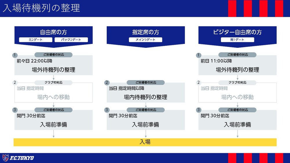No dia 10 de abril (Dom), durante o jogo contra o Urawa Reds, a organização da fila de espera para entrada será realizada conforme descrito abaixo. Agradecemos sua compreensão e cooperação.