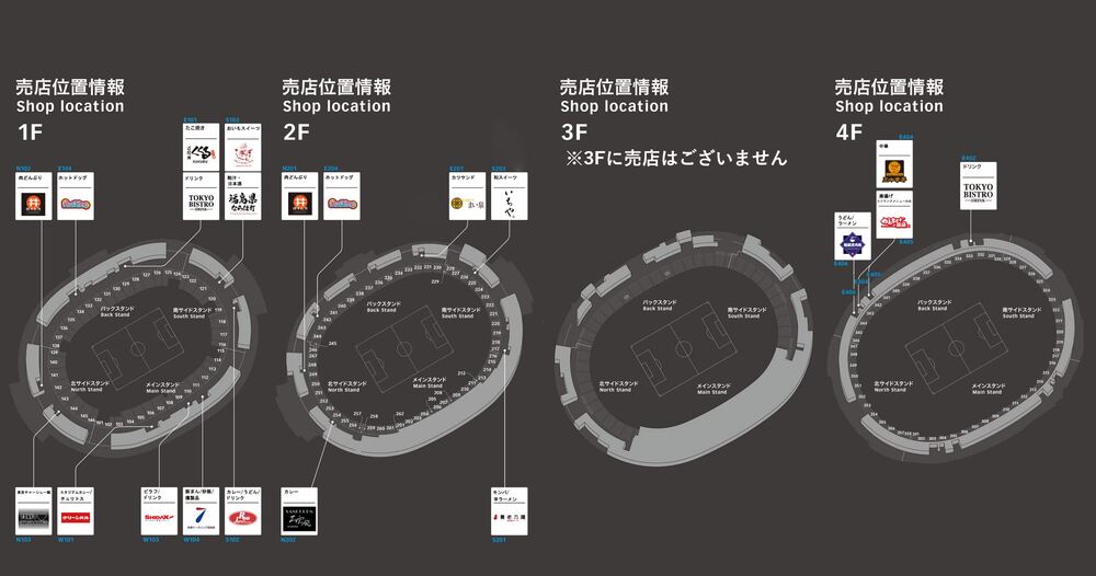Com a cooperação do Japan National Stadium, haverá 21 lojas dentro do estádio e 10 food trucks (previstos) fora do estádio.