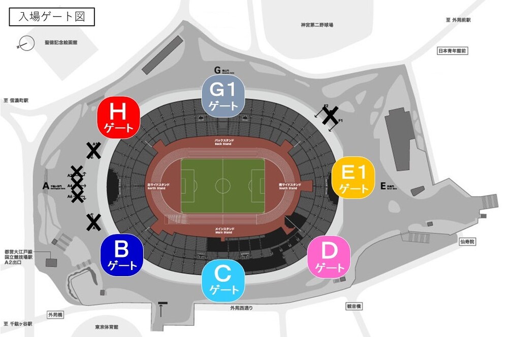 ・Não há estacionamento público no Japan National Stadium, portanto, por favor, utilize o transporte público.