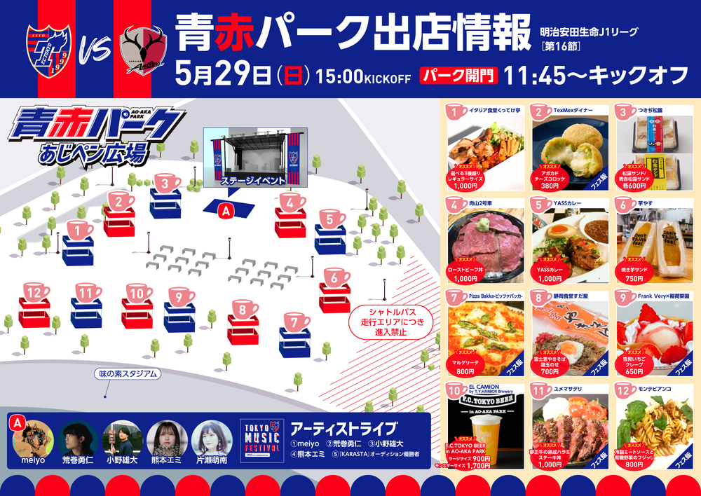 29/5 (Dom) Sobre a realização do AO-AKA PARK (TOKYO MUSIC FESTIVAL) no jogo contra Kashima