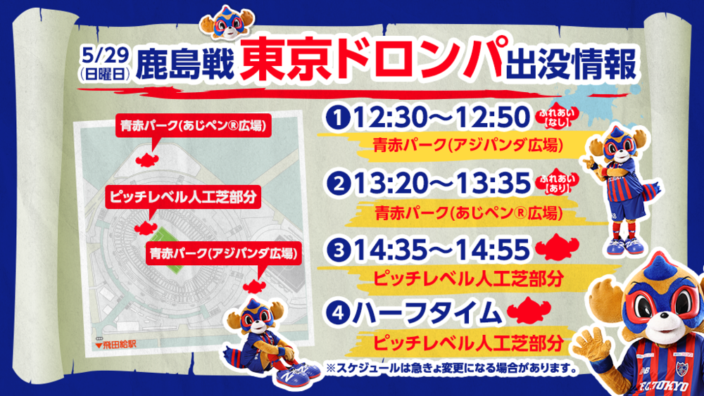 • 29/5 (Dom) Informações sobre a aparição do TOKYO DOROMPA na partida contra Kashima!