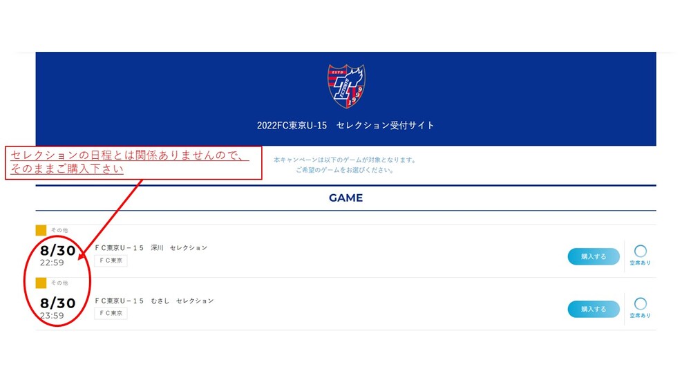 ※Se você remover o FC Tokyo das configurações de clube favorito antes do término do período de inscrição, não será possível receber informações do FC Tokyo, portanto, por favor, tenha cuidado.