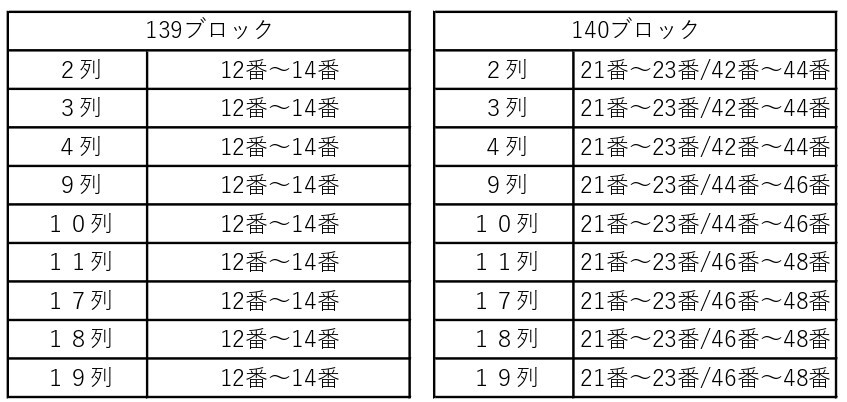 ② Área de assentos para cadeirantes na arquibancada norte e na arquibancada de trás, e na arquibancada sul (parte da área dos assentos do lado sul) 【1º nível】