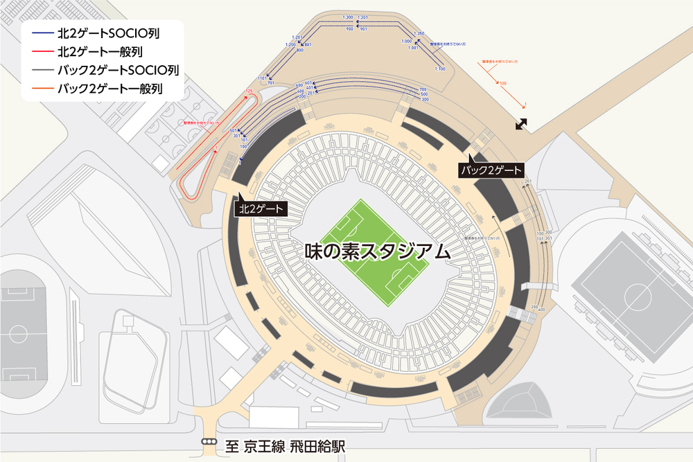 ・Estacionar na rua ou em estacionamentos de lojas próximas sem permissão ao visitar o Ajinomoto Stadium, incluindo no dia da partida, causa transtornos e é estritamente proibido.
