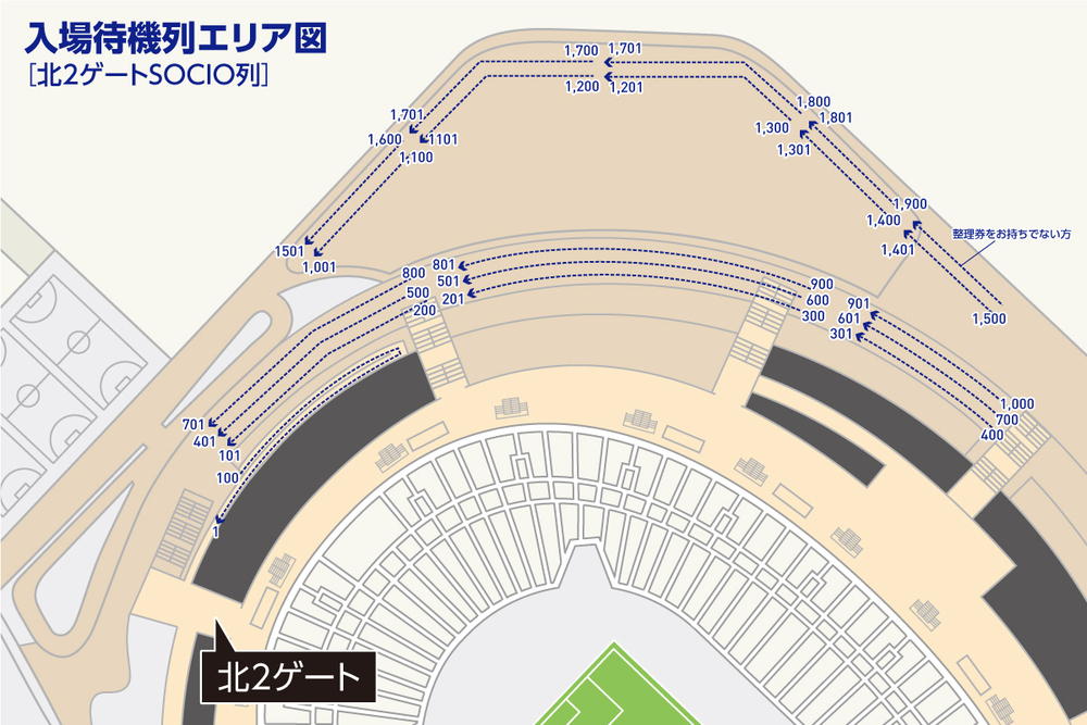 No dia 5 de novembro (Sáb), na partida contra o Kawasaki Frontale, a organização da fila de espera para entrada será realizada conforme descrito abaixo. Agradecemos sua compreensão e cooperação.