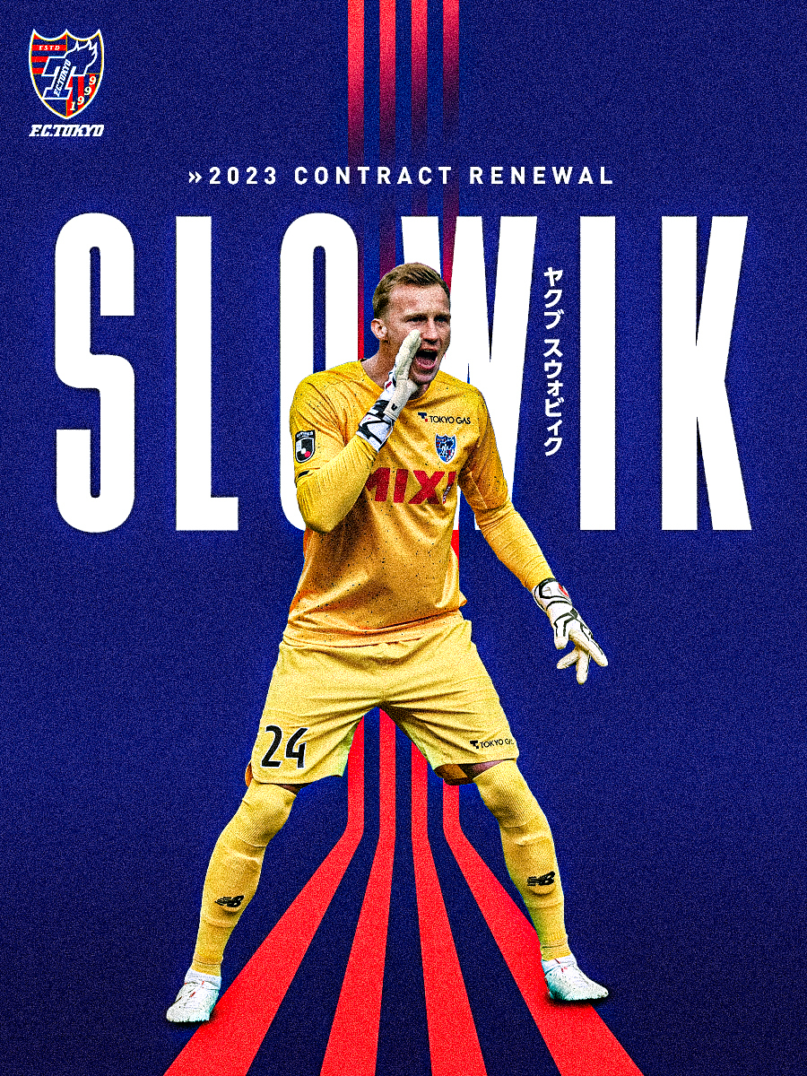 Gostaríamos de informar que o FC Tokyo chegou a um acordo contratual com o jogador Jakub SLOWIK para a temporada 2023.