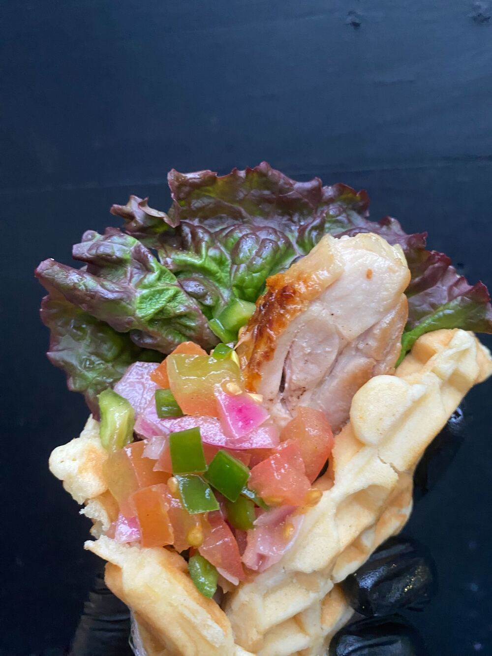 É um taco rice feito com arroz integral cultivado naturalmente, coberto com dip de abacate amassado na hora e fatias!