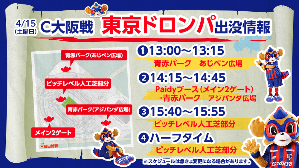 15/4 (Sáb) Informações sobre a aparição do TOKYO DOROMPA na partida contra C Osaka!