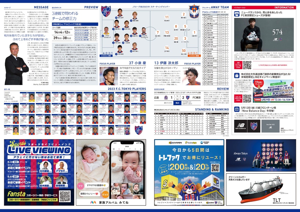 29 de abril (Sáb feriado) 2023 Meiji Yasuda Life Insurance Company J1 League Rodada 10 vs Albirex Niigata (Início às 15:00 / Ajinomoto Stadium) sobre o programa oficial do dia da partida, informamos conforme abaixo.