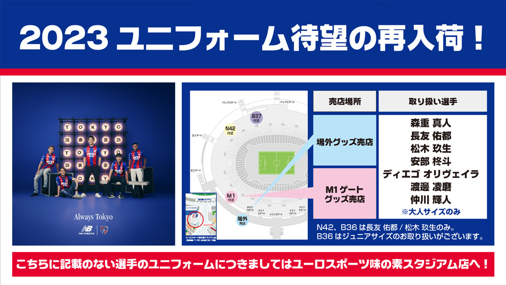 Na temporada 2023, em jogos em casa, após uma vitória, ao comprar produtos do FC Tokyo no valor de 2.000 ienes (com impostos) ou mais na loja de produtos do lado da torcida no estádio, você ganhará 1 moeda da vitória!!