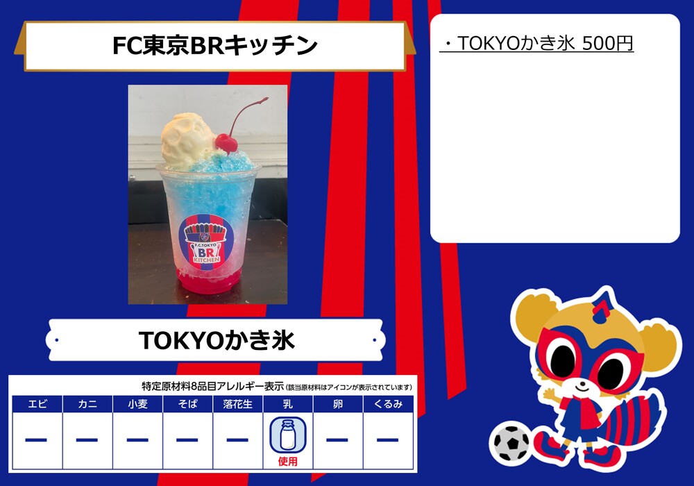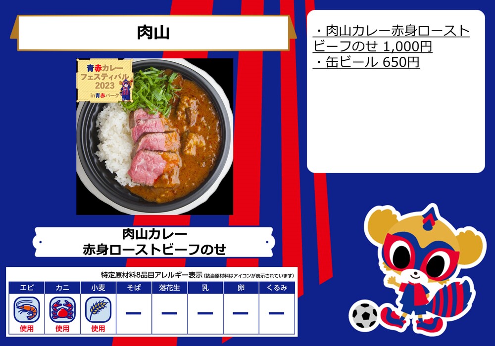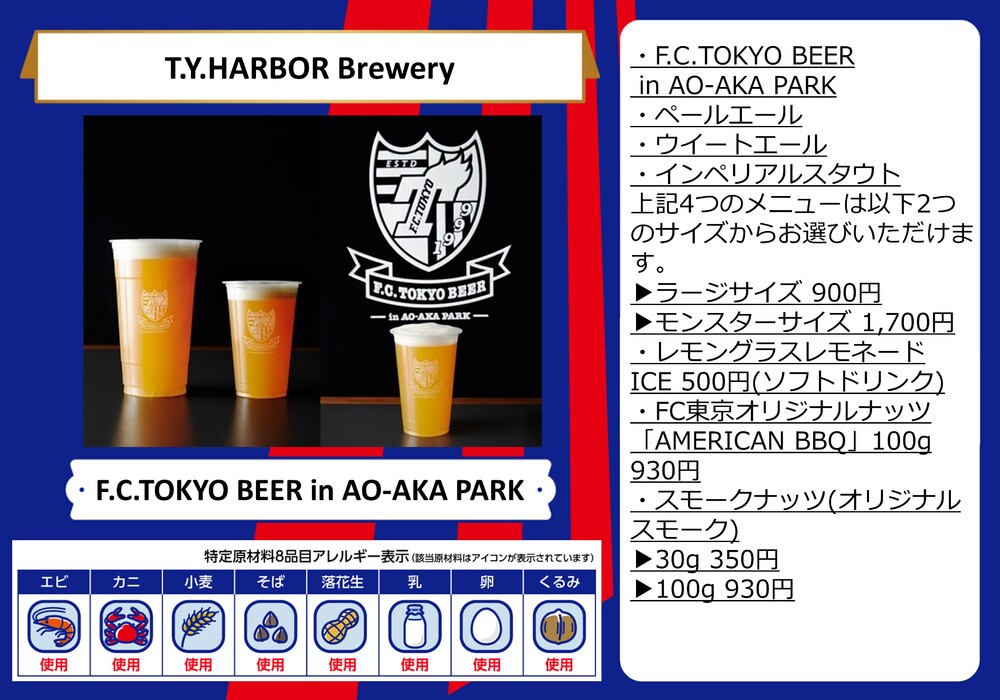 6 de setembro (Qua) 2023 J-League YBC Levain Cup Prime Stage Quartas de final Jogo 1 vs Avispa Fukuoka no AO-AKA PARK supported by TOKYO GAS (fora do estádio) e nas lojas no corredor interno do estádio (dentro do estádio) serão vendidos os menus de comida.