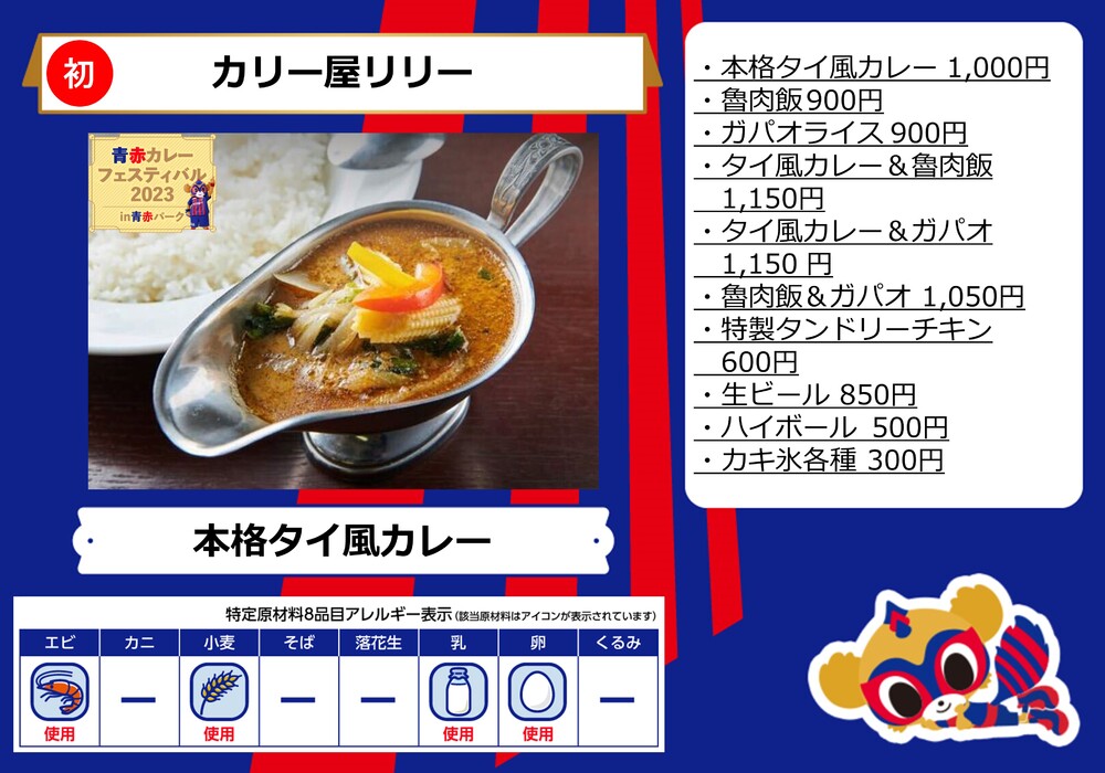 Coma vários tipos de curry deliciosos no AO-AKA PARK e apoie o time!
