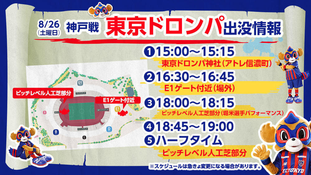 26/8 (Sáb) Informações sobre a aparição do TOKYO DOROMPA na partida contra Kobe!