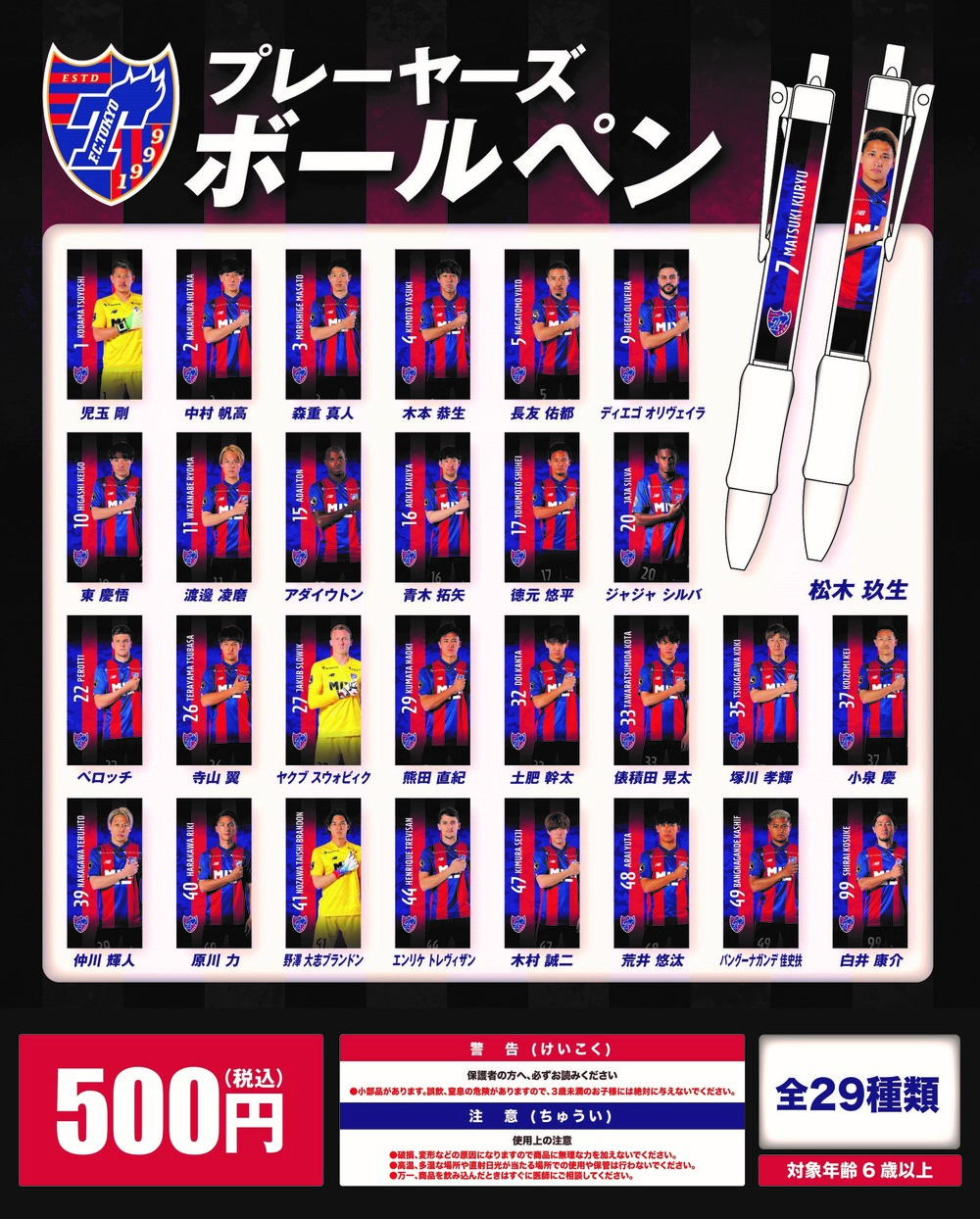 Durante os jogos em casa, venderemos produtos do dia da partida com a data e o adversário. Os jogadores também mudam a cada vez! É um produto perfeito como lembrança para assistir ao jogo.