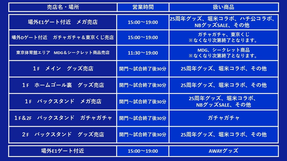 26/8 (Sáb) Jogo contra Kobe - Aviso sobre a abertura da loja de produtos e da área de gacha-gacha