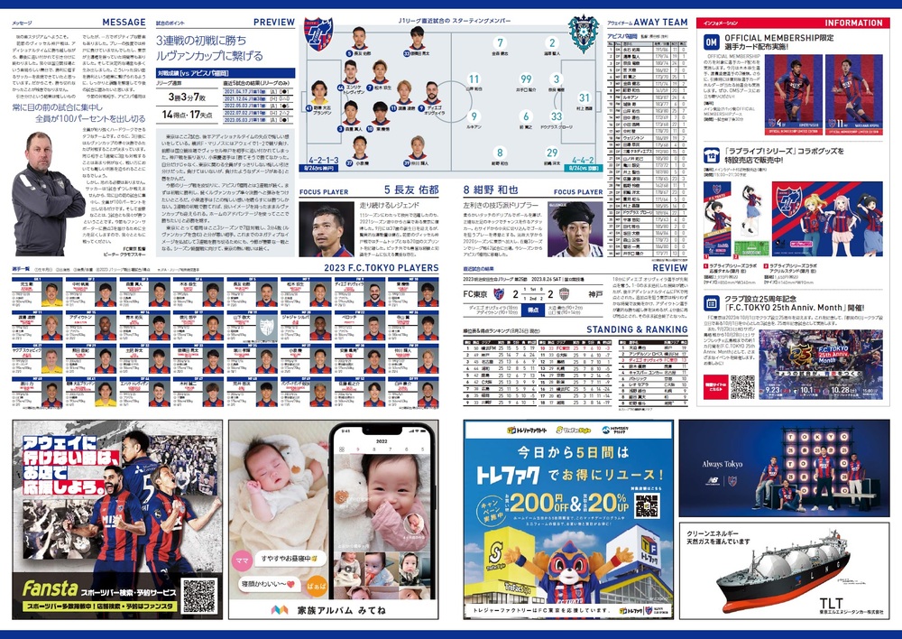 3 de setembro (Dom) 2023 Meiji Yasuda Life Insurance Company J1 League Rodada 26 vs Avispa Fukuoka (Início às 19:00 / Ajinomoto Stadium) sobre o programa oficial do dia da partida, informamos conforme abaixo.